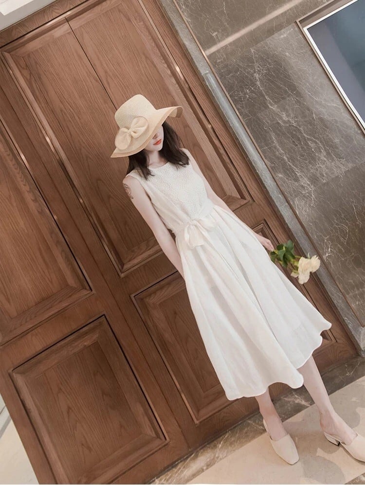【ワンピース】 ワンピース 春 夏 ひざ下 膝下 ワンピース 女子会 婚活 食事会 無地 ノースリーブ 20代 30代 40代 aライン ワンピース ワンピースドレス 韓国 ワンピース ビーチ 海 リゾート 大人 可愛い きれいめ ホワイト 白 S M L XL