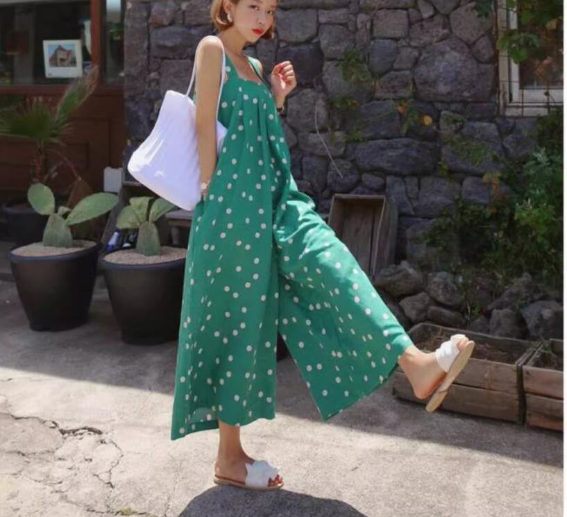 【サロペット】 オールインワン サロペット ロンパース オーバーオール ジャンプスーツ レディース 春 夏 20代 30代 40代 ノースリーブ ハイウェスト ワイドパンツ レディース リゾート ビーチ 海 グリーン 緑 フリーサイズ