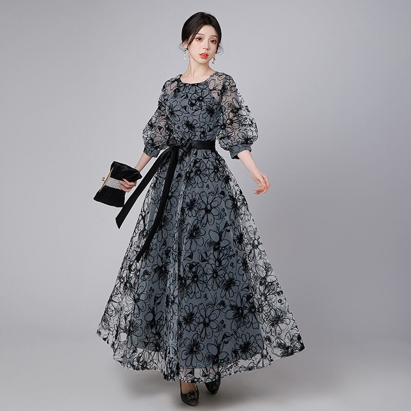 【パーティードレス】大きいサイズ パーティードレス 結婚式 お呼ばれドレス 結婚式のお呼ばれ 花柄 ワンピース シンプル 黒 ブラック ロングワンピース 20代 30代 40代 袖あり ロング 体型カバー フォーマルドレス 結婚式フォーマル お呼ばれ 二次会 フォーマルワンピース おしゃれ XS S M L XL 2XL 3XL