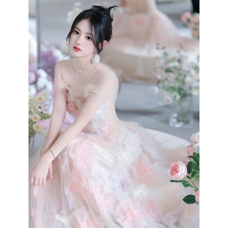 ラブリーなペールカラーのカラードレス。