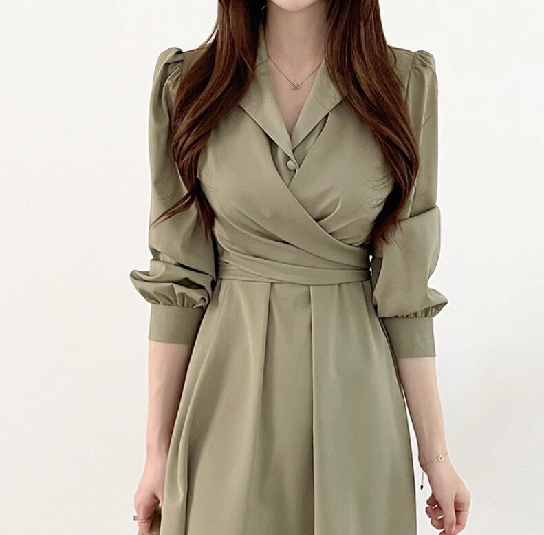 【ワンピース】 ワンピース レディース 春 秋 冬 ひざ下 膝下 ミモレ丈 ワンピース 通勤 入園式 卒園式 入学式 卒業式 母 ママ 服装 無地 長袖 20代 30代 40代 シャツ ワンピース ドレス 大人 可愛い きれいめ 婚活 食事会 顔合わせ グリーン 緑 グレー ブラック 黒 フリーサイズ
