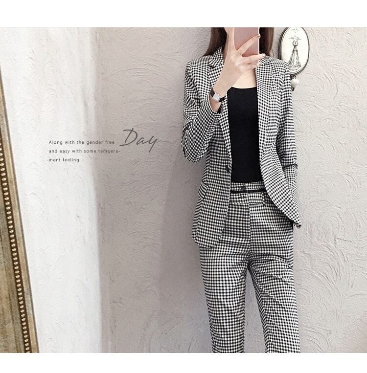 クールに着こなせる!大人かっこいいギンガムチェックのパンツスーツ。