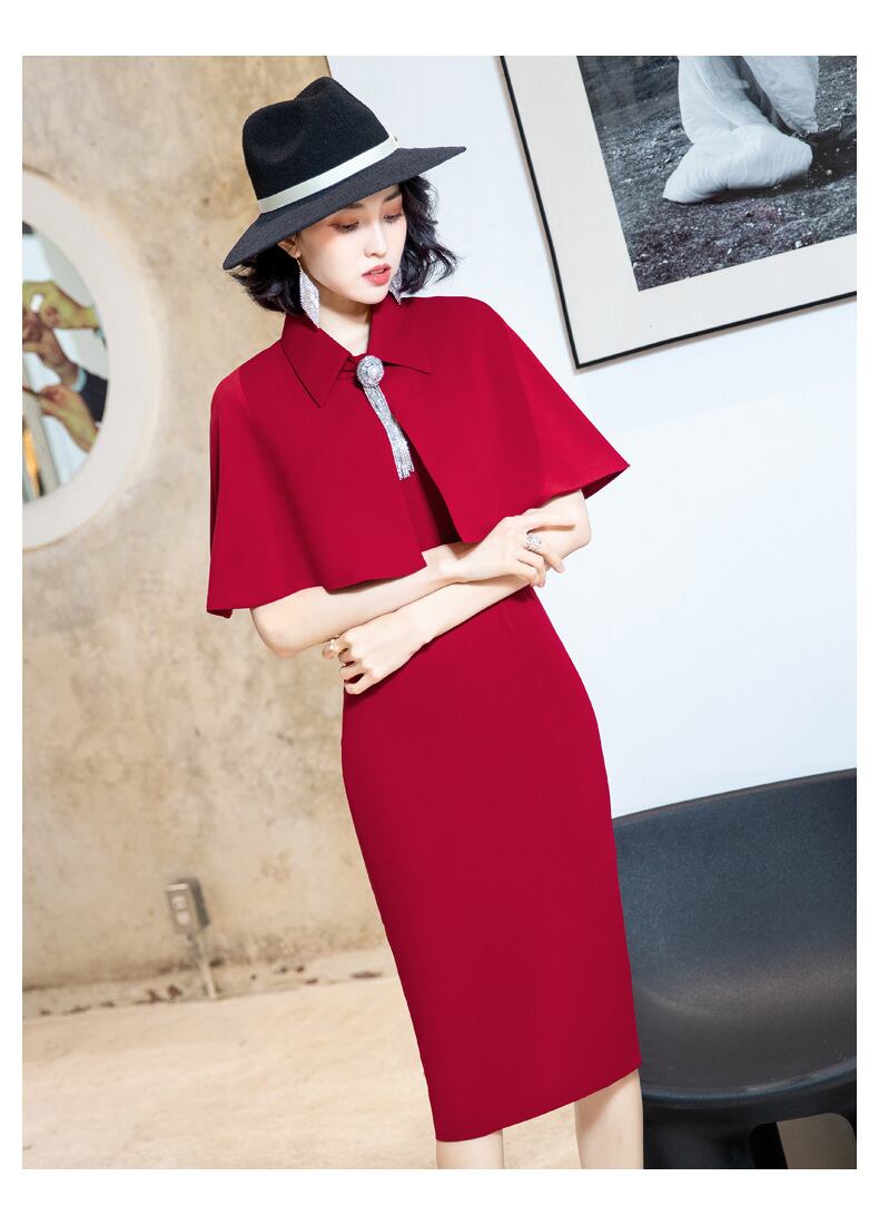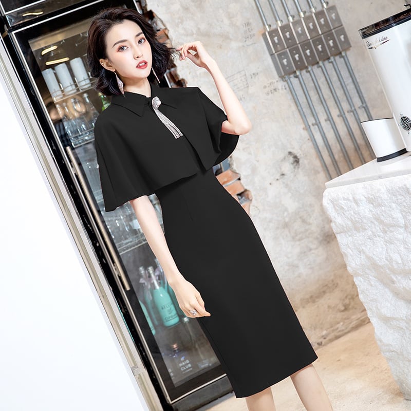 大人の女性らしさを演出してくれるケープ風のワンピースドレス。