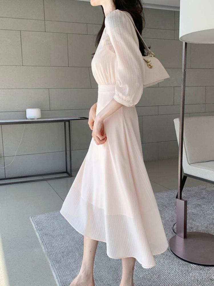 【ワンピース】 ワンピース レディース おしゃれ 20代 30代 40代 春 秋 冬 ひざ下 膝下 ワンピース 卒業式 入学式 母親 ママ 服装 女子会 食事会 婚活 顔合わせ 無地 長袖 20代 30代 40代 韓国 ワンピース ドレス ワンピース 大人 可愛い きれいめ シンプル ベージュ S M L XL
