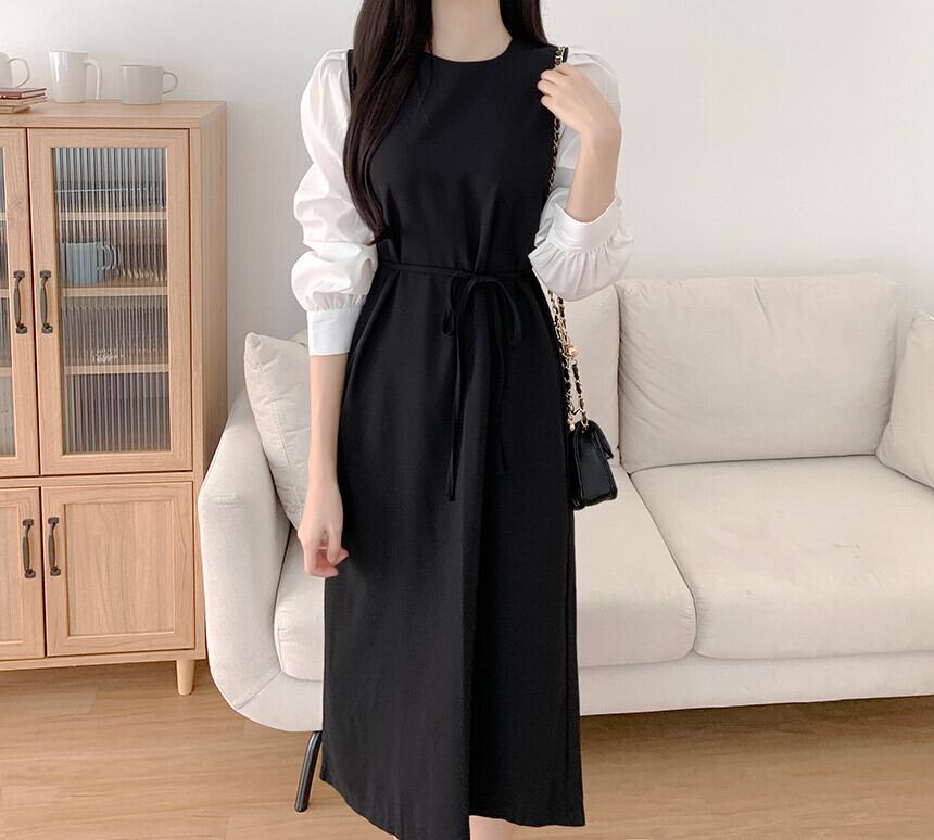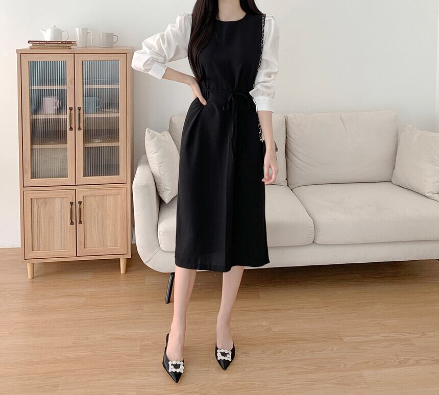【ワンピース】 ワンピース レディース おしゃれ 20代 30代 40代 春 秋 冬 ひざ下 膝下 ワンピース 卒業式 入学式 卒園式 入園式 無地 長袖 20代 30代 40代 ワンピースドレス バイカラー 韓国 ワンピース ドレス ワンピース 大人 可愛い きれいめ ベージュ ブラック 黒 フリーサイズ