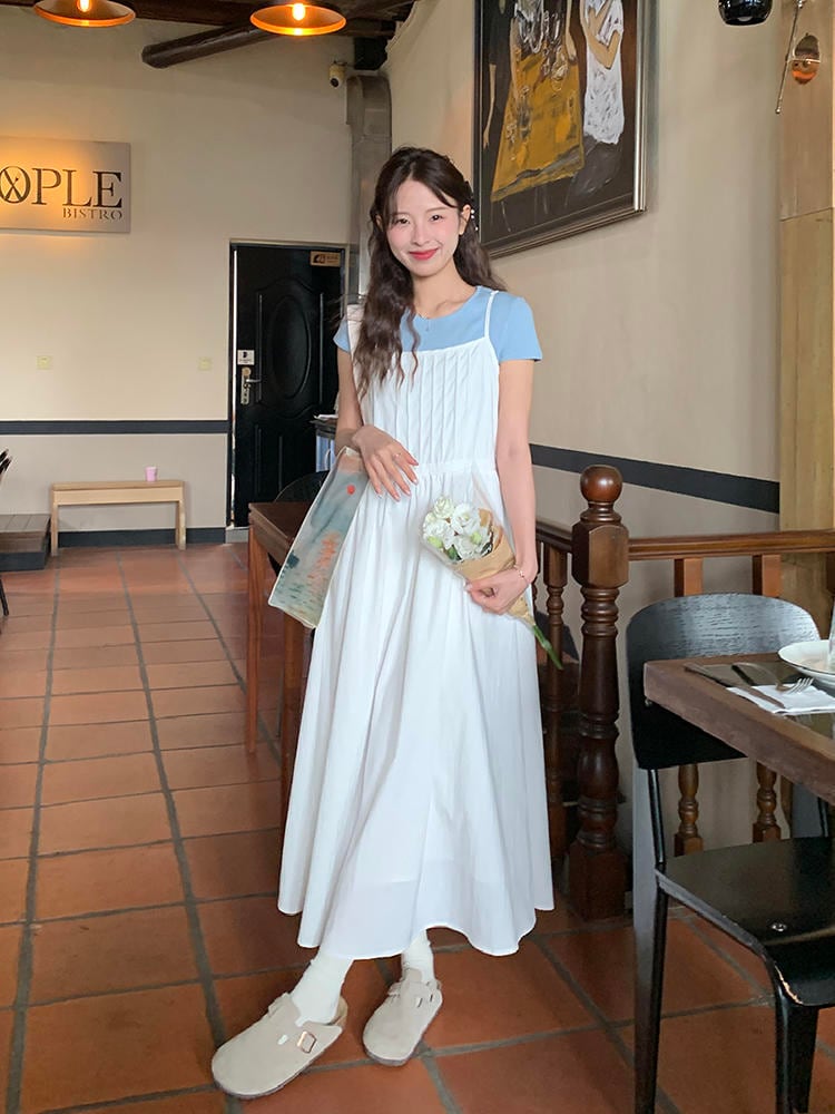 【ワンピース】 ワンピース レディース 春 夏 秋 おしゃれ 20代 30代 40代 ドット 無地 ロングワンピース ノースリーブ マタニティ ワンピース 韓国 ワンピース 大人 可愛い カジュアル きれいめ ホワイト 白 フリーサイズ