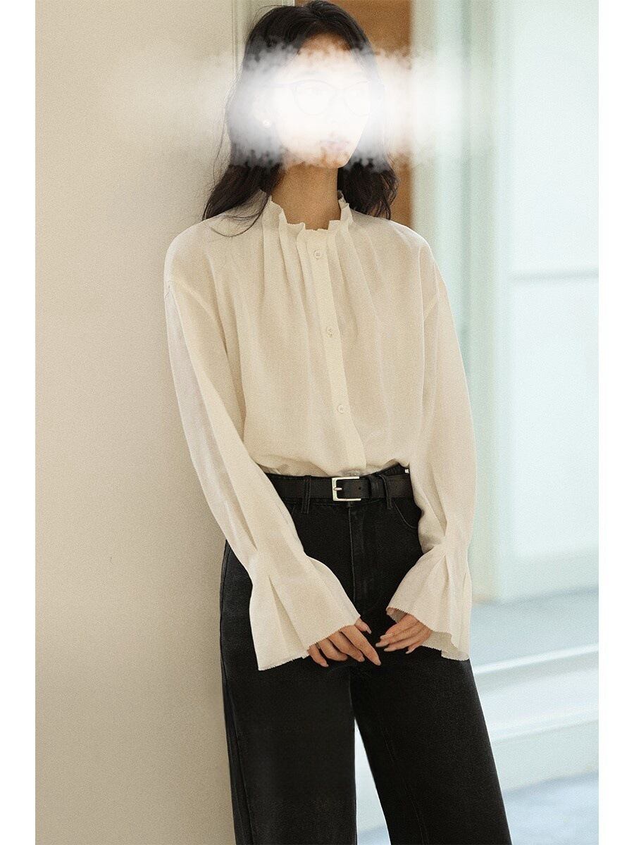 大人可愛いスタンドネックのブラウス。