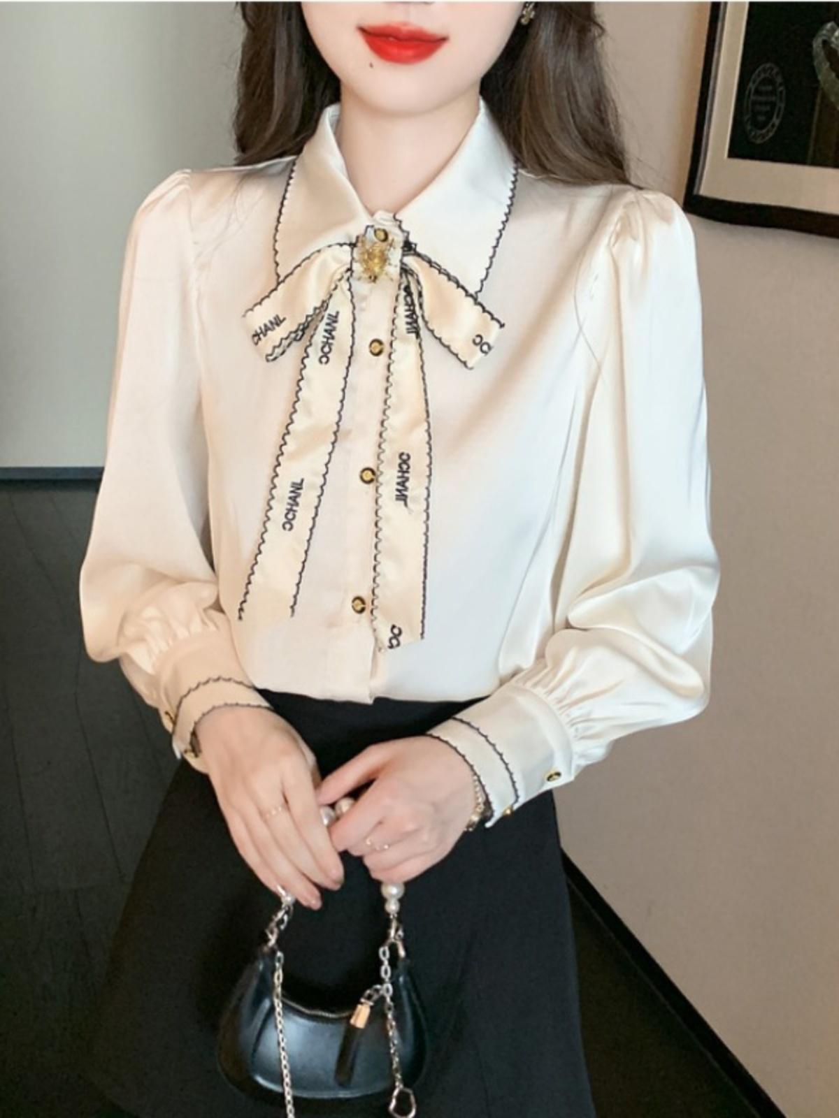 【ブラウス】大きいサイズ リボンタイ ブラウス レディース 大人 可愛い トップス 無地 シャツ ブラウス 韓国 ブラウス 春 秋 冬 20代 30代 40代 シンプル シフォン 白 ホワイト オフィス レディース 長袖 フォーマル 体型カバー きれいめ S M L XL 2XL
