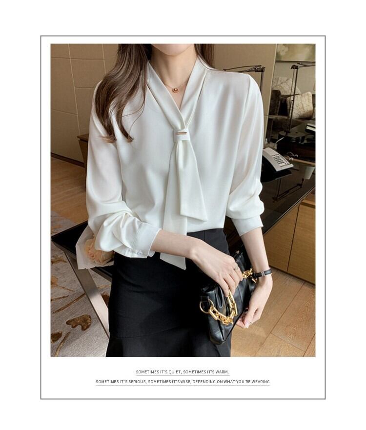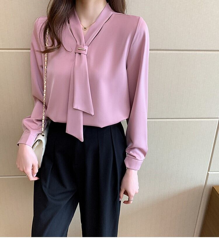 お仕事着におすすめなボウタイブラウス。