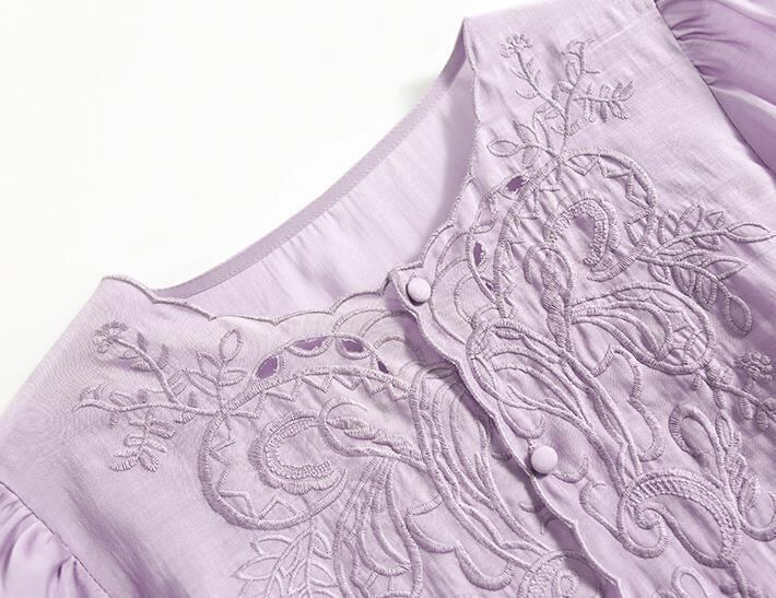 華やかなお花刺繍がエレガントなブラウス。
