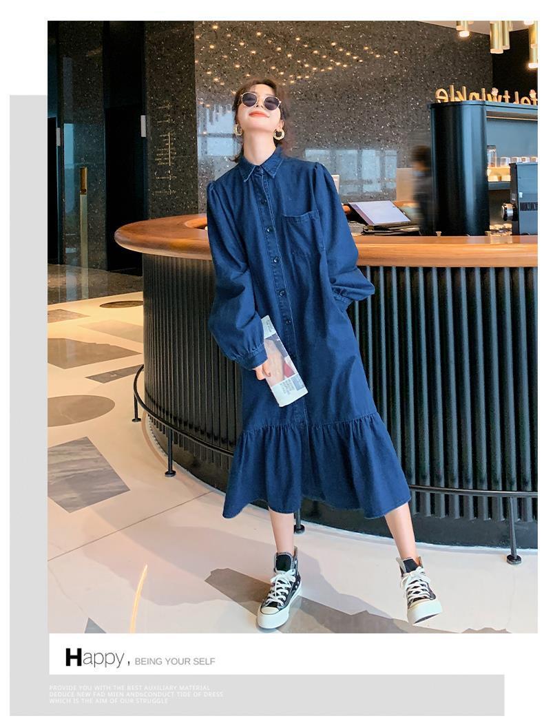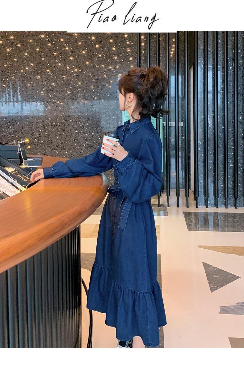 【ワンピース】 ワンピース レディース 春 秋 冬 おしゃれ 20代 30代 40代 デニム ロングワンピース 長袖 ロング 韓国 ワンピース ドレス ワンピース 大人 可愛い カジュアル きれいめ ネイビー 青 S M L