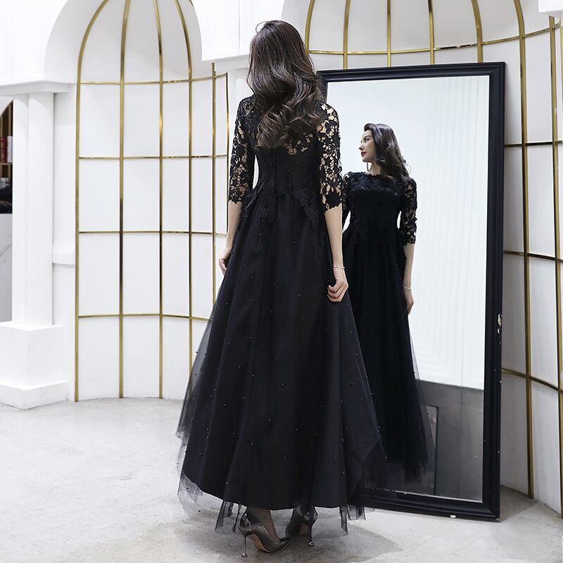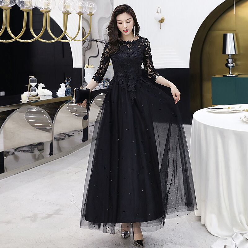 【パーティードレス】大きいサイズ パーティードレス 結婚式 お呼ばれドレス 結婚式のお呼ばれ ワンピース 黒 ブラック ロングワンピース 20代 30代 40代 フォーマルドレス 袖あり ロング 体型カバー お呼ばれ 二次会 レース フォーマルワンピースシンプル おしゃれ S M L XL 2XL