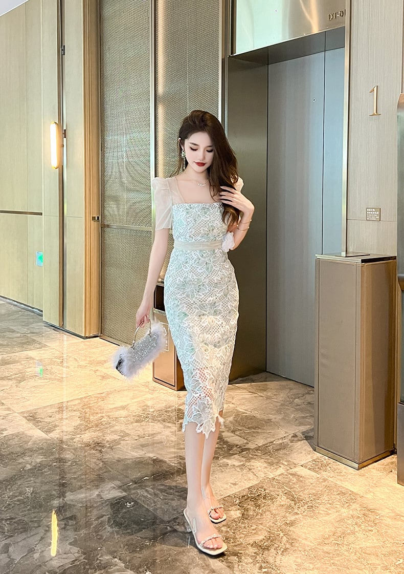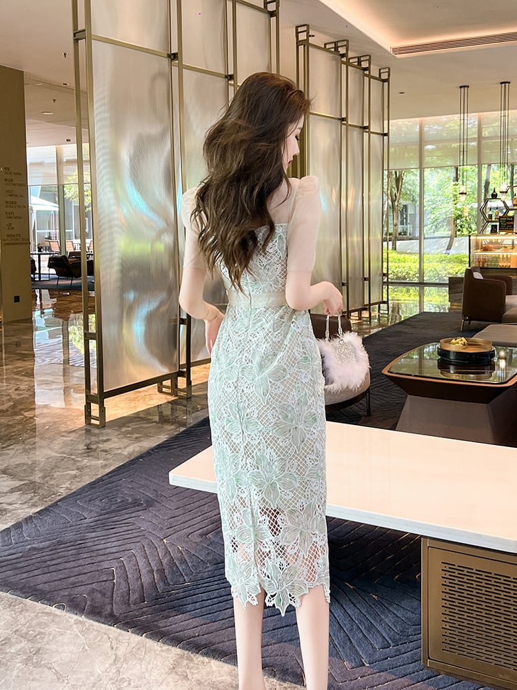 【パーティードレス】 パーティードレス 結婚式 お呼ばれドレス 結婚式のお呼ばれ ワンピース 20代 30代 40代 フォーマルドレス 袖あり ドレス ミディ丈 膝丈 体型カバー フォーマルドレス ドレス 二次会 パーティー お呼ばれ フォーマル 総レース フォーマルワンピース シンプル おしゃれ グリーン 緑 S M L