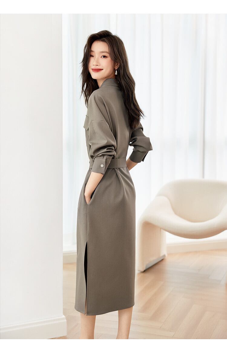 【ワンピース】 ワンピース レディース 春 夏 秋 おしゃれ 20代 30代 40代 無地 ロングワンピース 通勤 オフィス 春秋 長袖 シャツ ワンピース ミモレ丈 韓国 ワンピース ドレス ワンピース 大人 可愛い きれいめ キャメル ブラック 黒 S M L XL