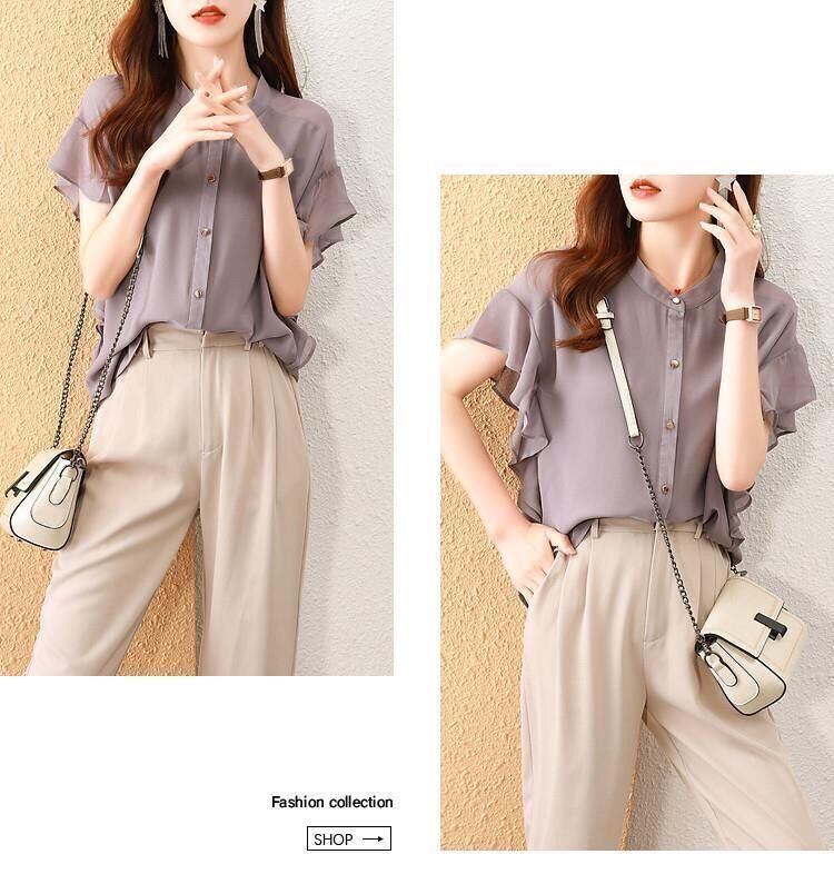 【ブラウス】 ブラウス レディース 大人 可愛い トップス 無地 シャツ ブラウス 韓国 ブラウス 春 夏 20代 30代 40代 シンプル フリル シフォン オフィス レディース 半袖 フォーマル 体型カバー きれいめ ライトパープル ピンク ネイビー 青 S M L XL