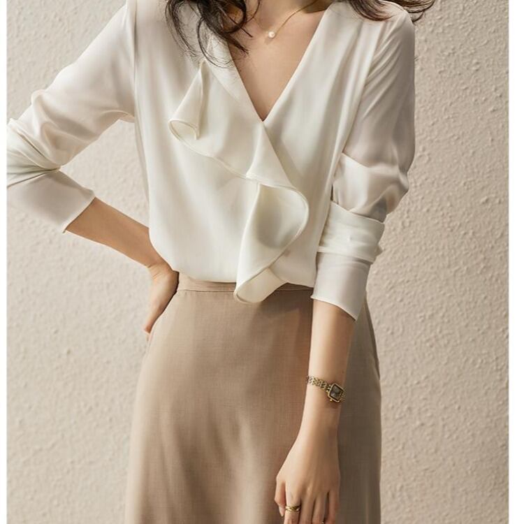 【ブラウス】ブラウス レディース 大人 可愛い トップス 無地 シャツ ブラウス 韓国 ブラウス 春 秋 冬 20代 30代 40代 シンプル フリル白 黒 オフィス レディース 長袖 フォーマル 体型カバー きれいめ ホワイト ブラック S M L XL