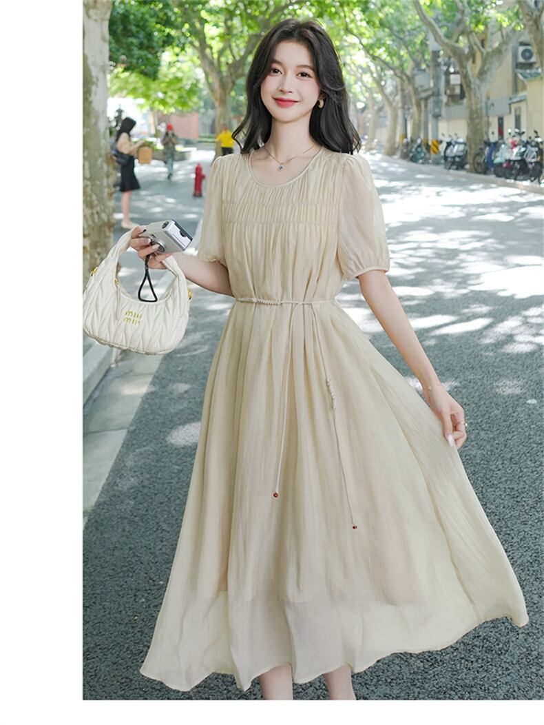 【ワンピース】ワンピース レディース 春 夏 秋 おしゃれ 20代 30代 40代 無地 ロングワンピース春秋 半袖 五分袖 ロング 韓国 ワンピース ドレス ワンピース 大人 可愛い きれいめ レトロ ベージュ グリーン 緑 S M L XL