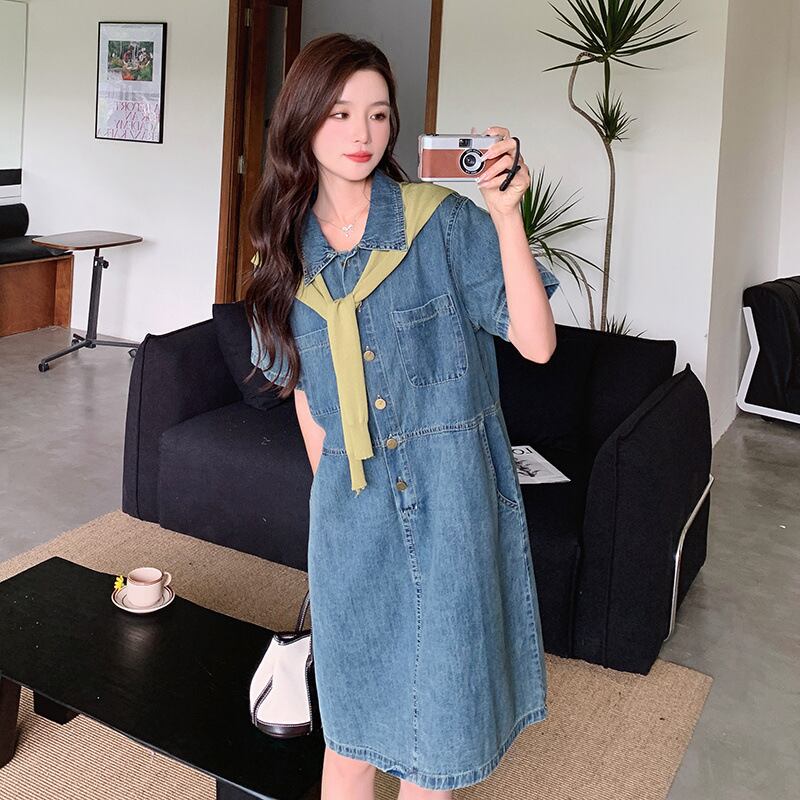 【ワンピース】ワンピース レディース 大人 可愛い 20代 春 夏 ミニ丈 ワンピース 無地 デニムワンピース タイトミニワンピース 春夏 半袖 五分袖 韓国 ワンピース ドレス 大人 可愛い カジュアル きれいめ ライトブルー S M L XL