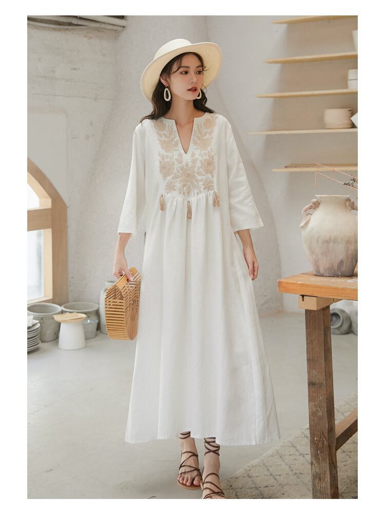アジアンテイストな立体刺繍とタッセルが可愛らしいワンピース。