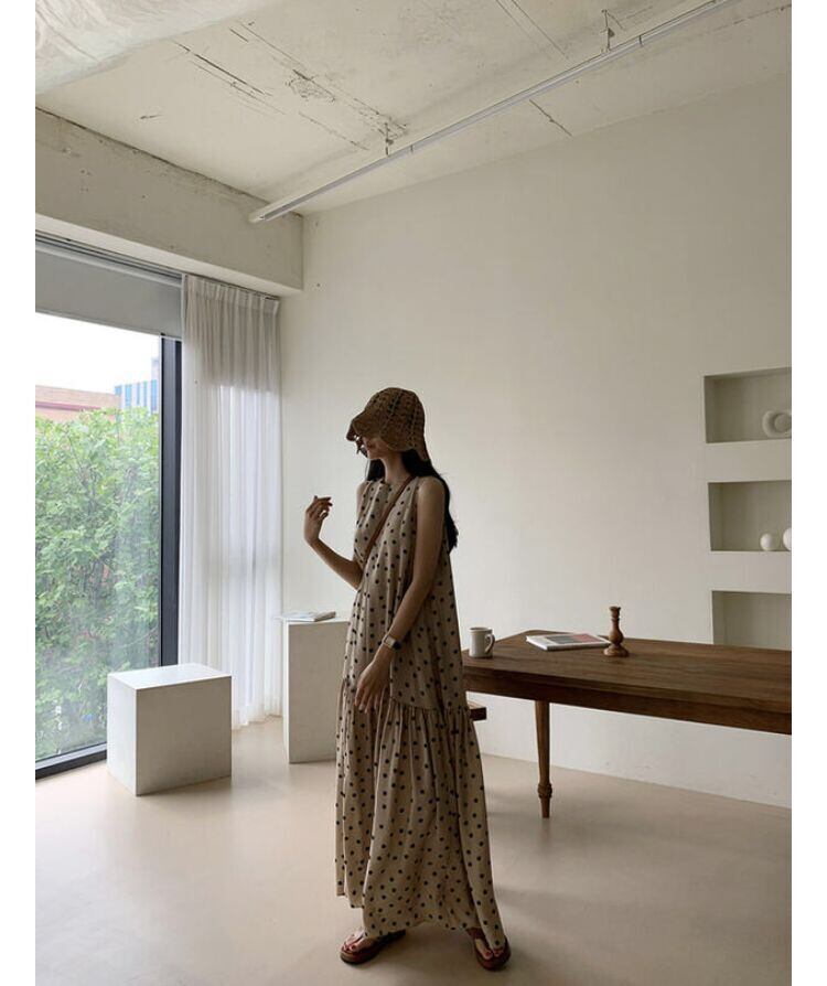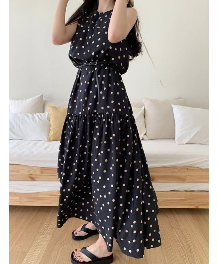 【ワンピース】ワンピース レディース 春 夏 秋 おしゃれ 20代 30代 40代 ドット ロングワンピース 春秋 ノースリーブ シャツ ワンピース ロング 韓国 ワンピース ドレス ワンピース 大人 可愛い カジュアル きれいめ ベージュ ブラック 黒 S M L XL