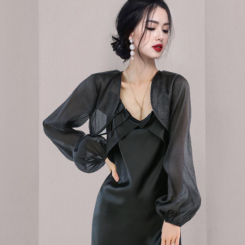 透け感あるシースルーのお袖がトレンド感をプラスしてくれる。