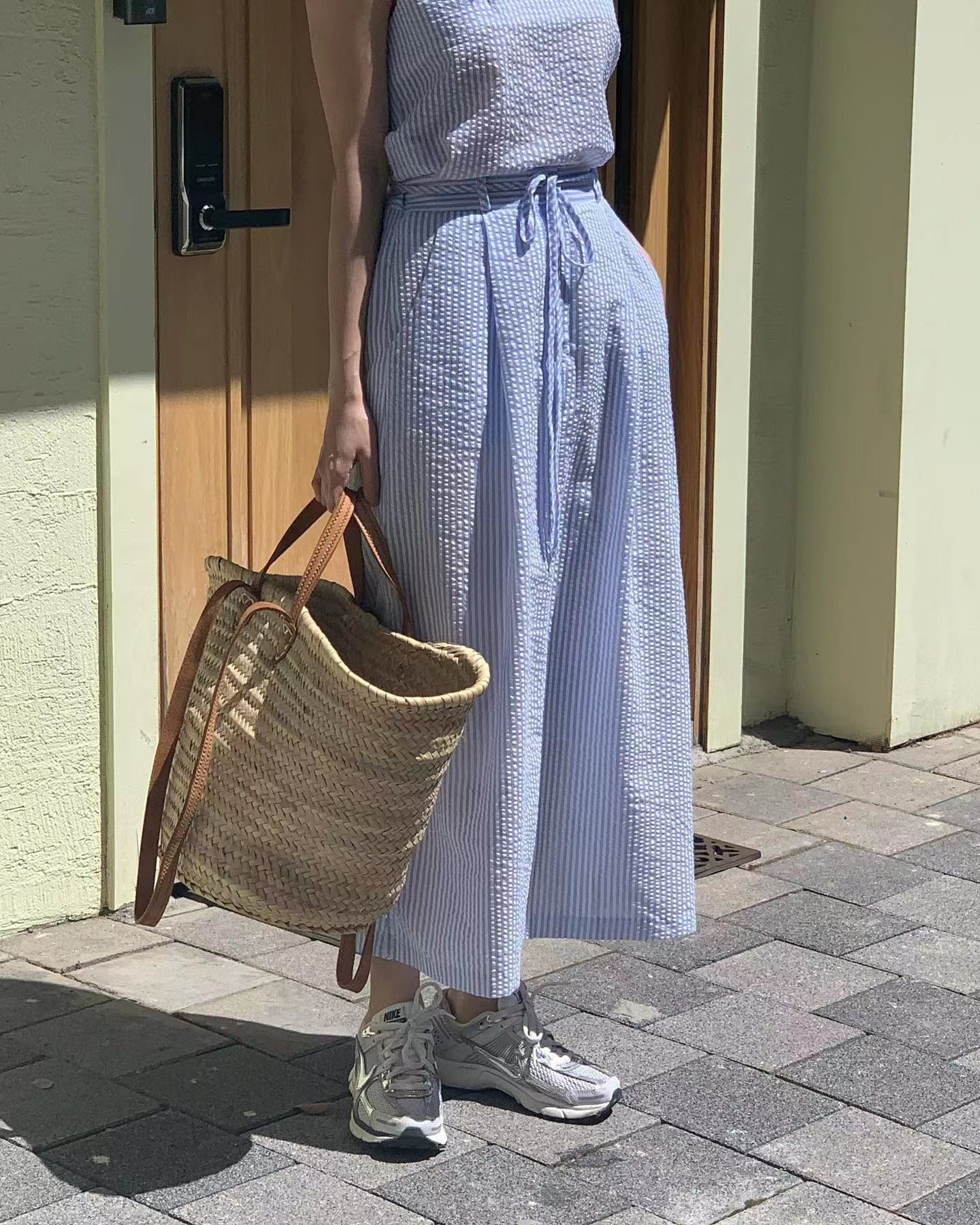普段使いやお出かけにおすすめ!なストライプのセットアップ。