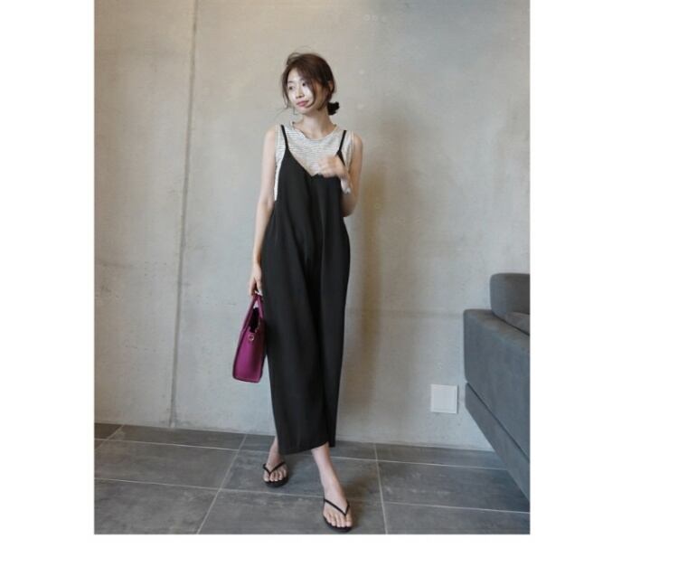 【サロペット】 オールインワン サロペット ロンパース オーバーオール ジャンプスーツ レディース 春 夏 秋 20代 30代 40代 ノースリーブ ハイウェスト ワイドパンツ レディース リゾート ビーチ 海 大人 可愛い きれいめ ブラック 黒 S M L XL