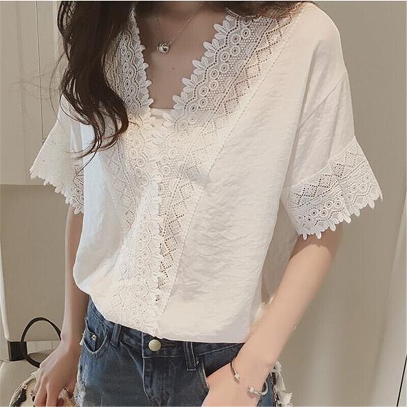 【ブラウス】大きいサイズ ブラウス レディース 大人 可愛い トップス 無地 シャツ ブラウス 韓国 ブラウス 春 夏 20代 30代 40代 シンプル レース 白 黒 オフィス レディース 半袖 五分袖 フォーマル 体型カバー きれいめ ホワイト ピンク S M L XL 2XL