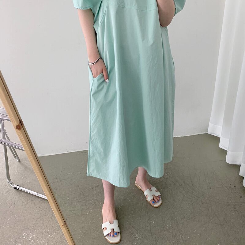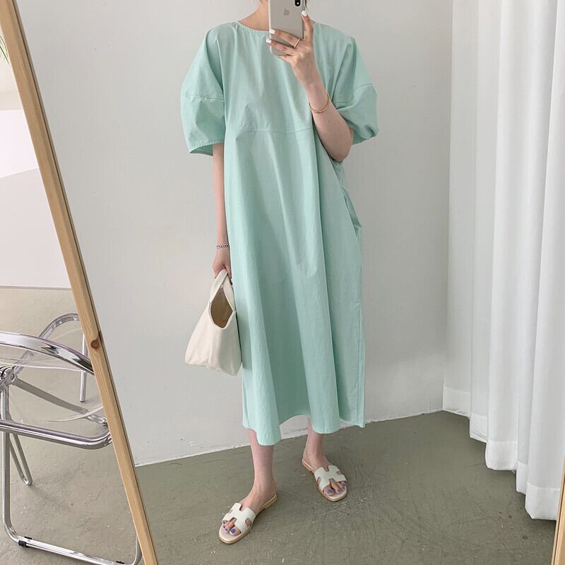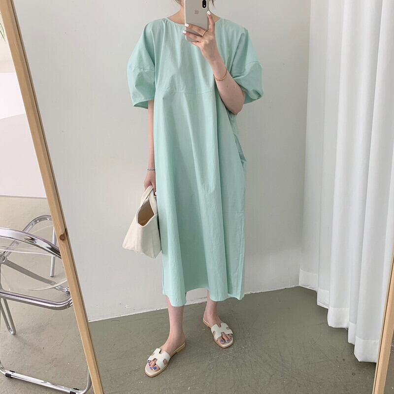 【ワンピース】 ワンピース レディース 春 夏 おしゃれ 20代 30代 40代 無地 ロングワンピース 春夏 半袖 五分袖 ロング aライン フレア 韓国 ワンピース ドレス ワンピース 大人 可愛い きれいめ グリーン 緑 ブラック 黒 アプリコット フリーサイズ
