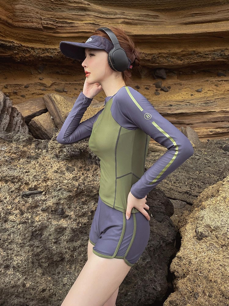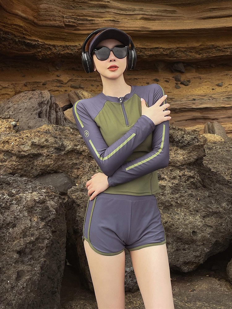 日焼け防止に!体型か隠れるラッシュガード付きのタンキニ2点セット。