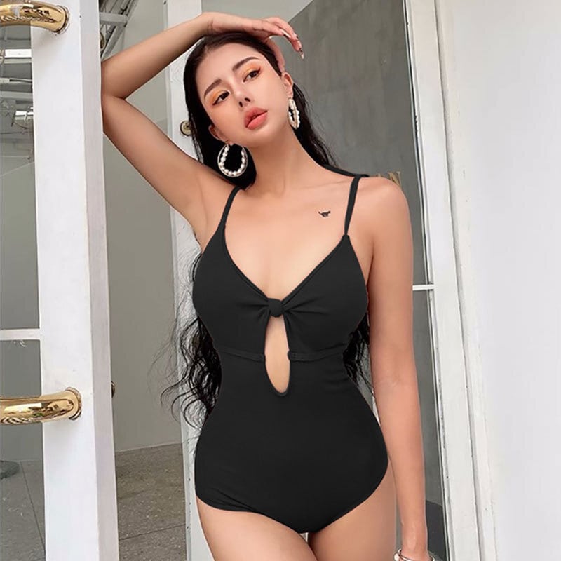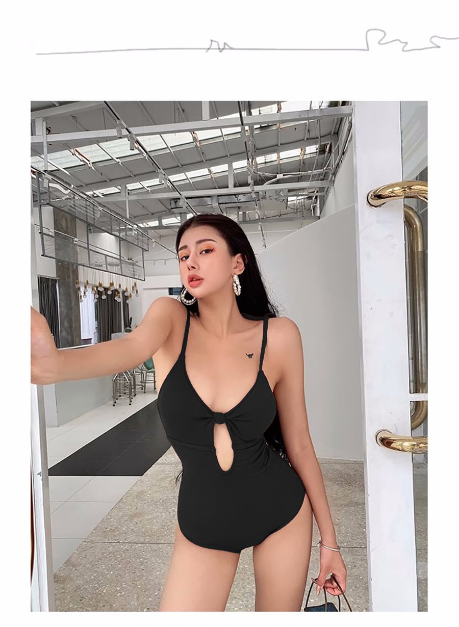 フロントのカットアウトがちょっぴりセクシーなワンピース水着。