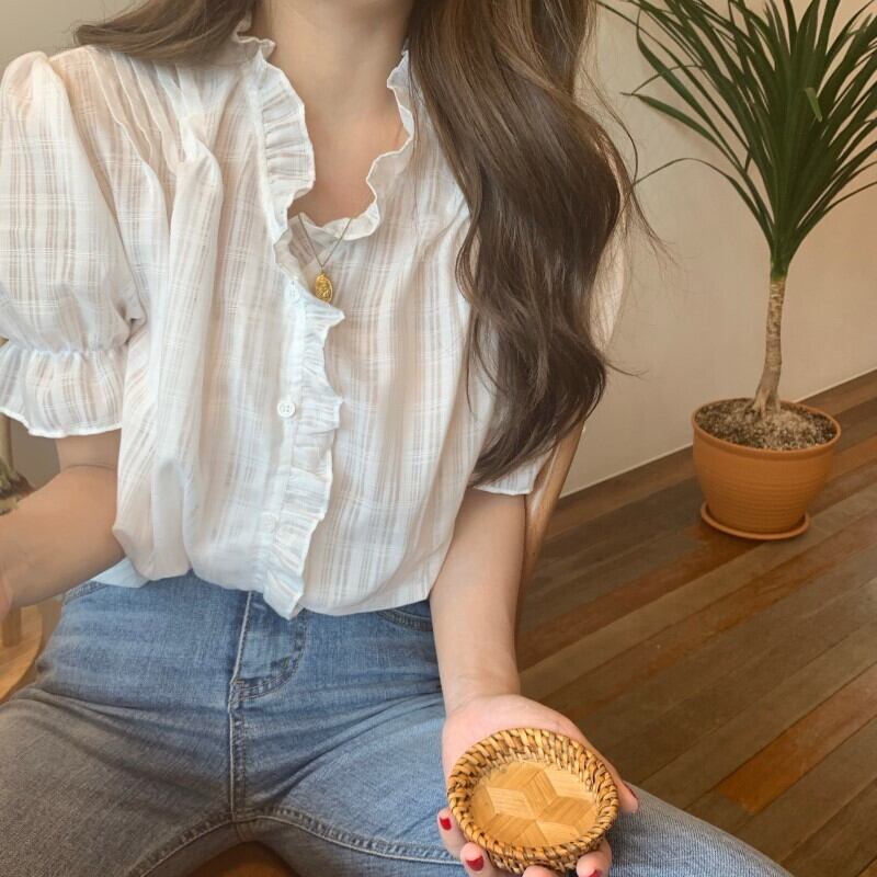 【ブラウス】大きいサイズ ブラウス レディース 大人 可愛い トップス 無地 シャツ ブラウス 韓国 ブラウス 春 夏 20代 30代 40代 シンプル フリル シフォン白 オフィス レディース 半袖 フォーマル 体型カバー きれいめ ホワイト S M L XL 2XL