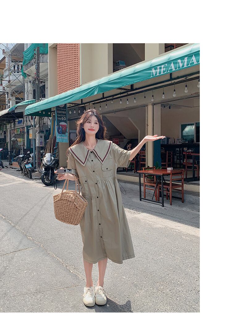 大きなセーラー風の襟が大人可愛いシャツワンピース。