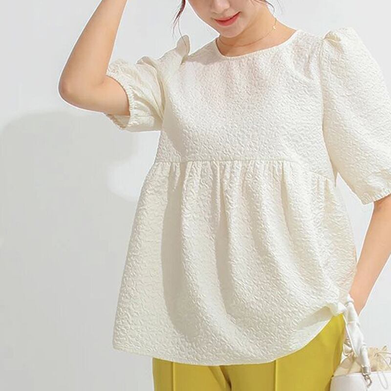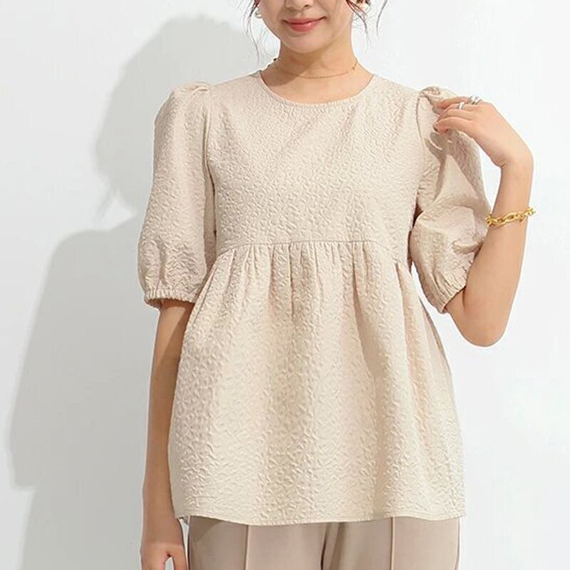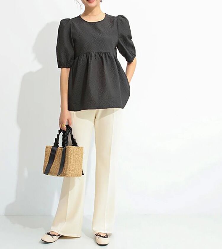 シルエットが可愛らしいジャガードペプラムブラウス。