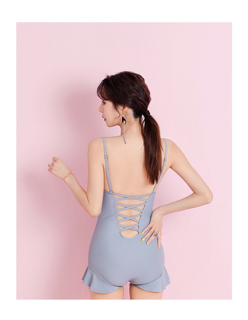 バックスタイルは編み上げとフリルでキュートなルックス。