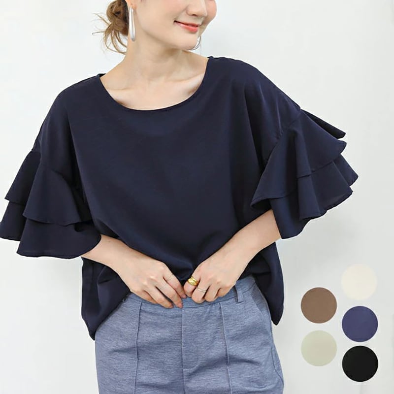 大人の可愛らしさをプラスするダブルフリルブラウス。