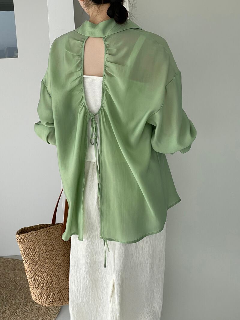【シャツ】レディース シャツブラウス ブラウス レディース 長袖 白 シャツ 20代 30代 40代 春 夏 トップス シースルー カジュアル 可愛い きれいめ シンプル グリーン 緑 ホワイト 白 ブラウン M L