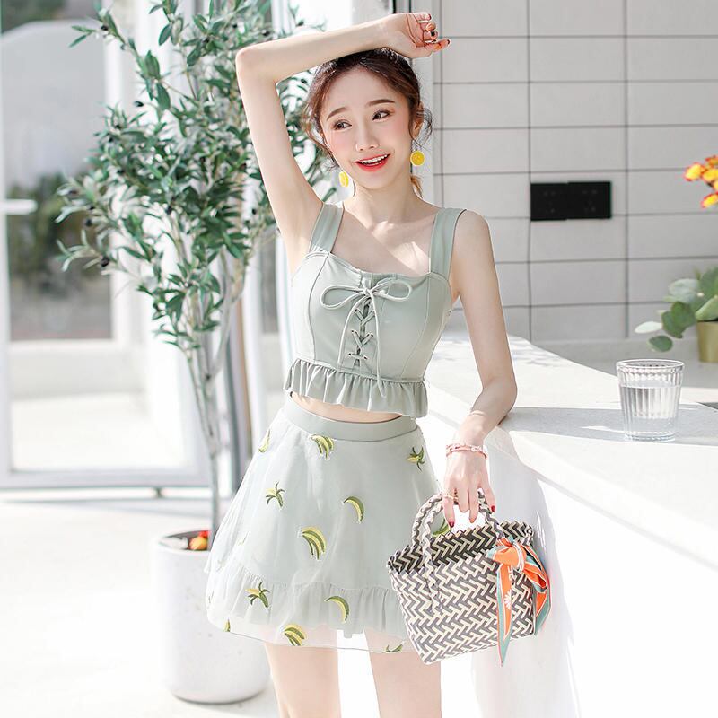 【水着】水着 ビキニ レディース 韓国 水着 大人 かわいい おしゃれ 体型カバー 20代 30代 40代 3点セット 水着ビキニ マイクロビキニ スカート付き セクシー 水着 海 ビーチ プール リゾート スイムウェア グリーン 緑 ピンク M L XL