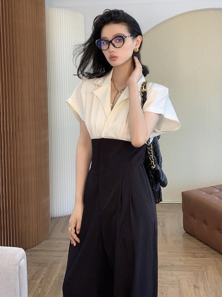 大人かっこいいオールインワンタイプのパンツドレス。