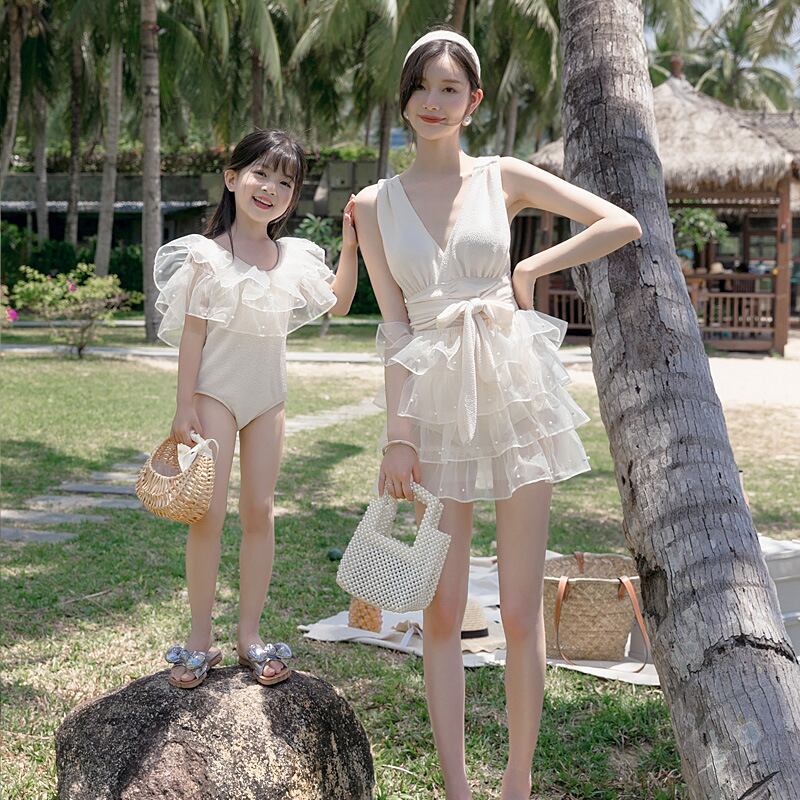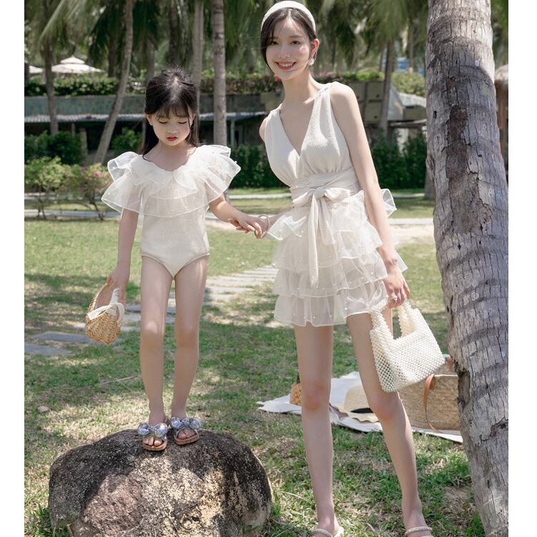 親子で着れちゃう!ウエストリボンが大人可愛いワンピース水着。