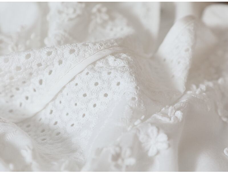 フロントのパンチングレースとお花刺繍が大人可愛いワンピース。
