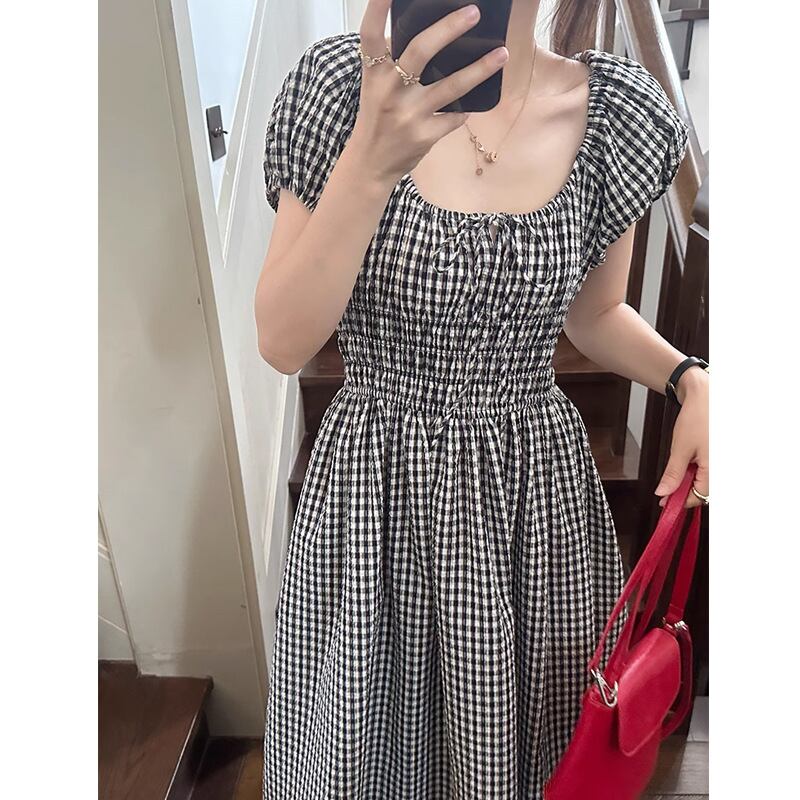 【ワンピース】ワンピース レディース 春 夏 おしゃれ 20代 30代 40代 ギンガムチェック ロングワンピース 海 ビーチ リゾート 春夏 半袖 マタニティ ワンピース ロング 韓国 ワンピース ドレス ワンピース 大人 可愛い きれいめ レトロ S M L