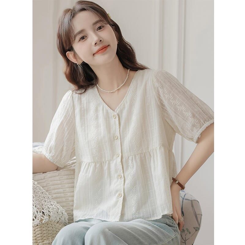 【ブラウス】ブラウス レディース 大人 可愛い トップス 無地 シャツ ブラウス 韓国 ブラウス 春 夏 20代 30代 40代 シンプル白 オフィス レディース 半袖 五分袖 フォーマル 体型カバー きれいめ ホワイト S M L