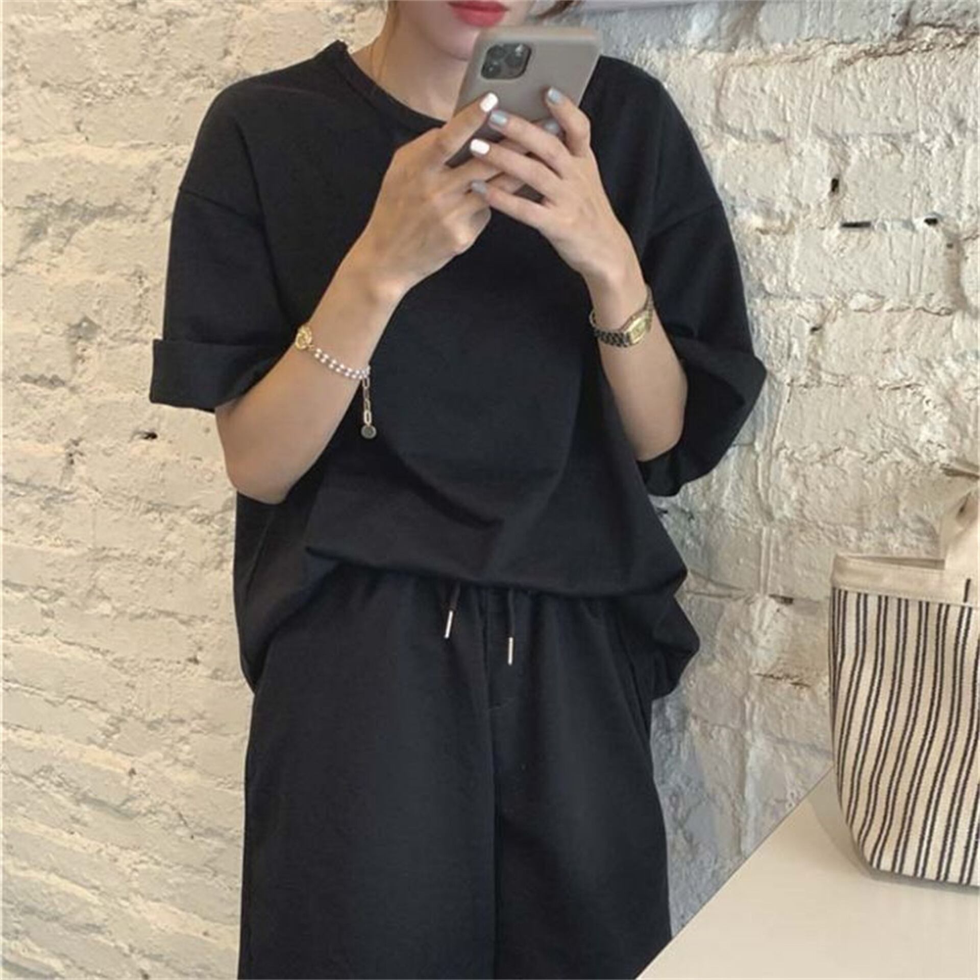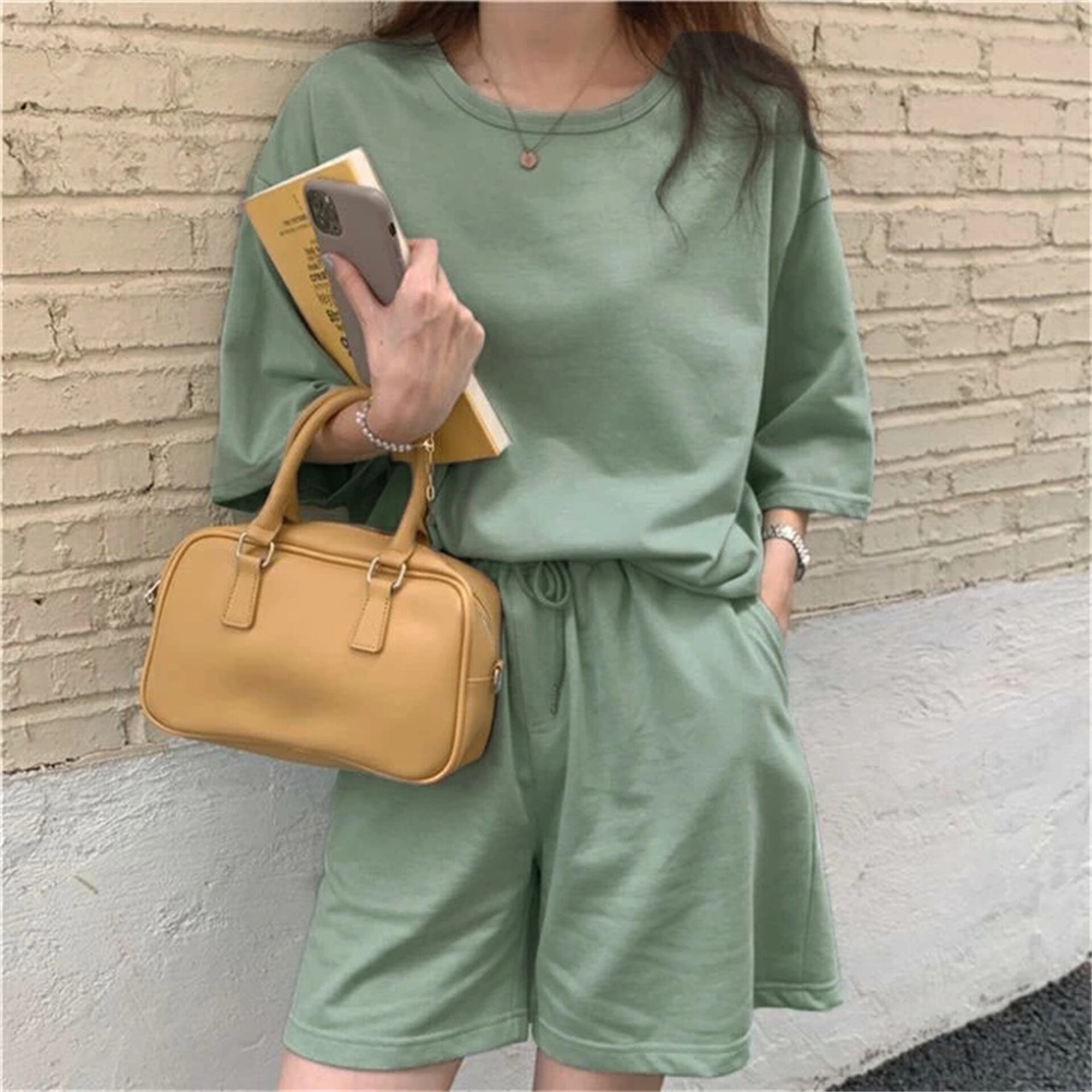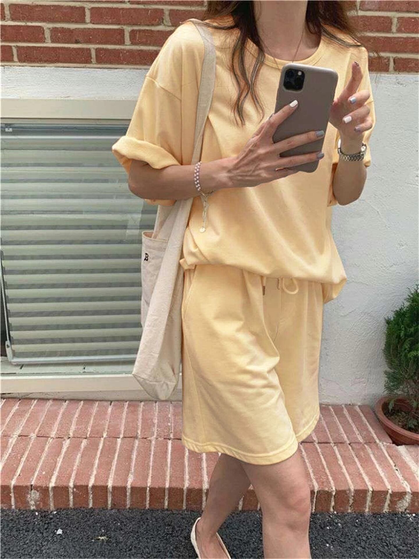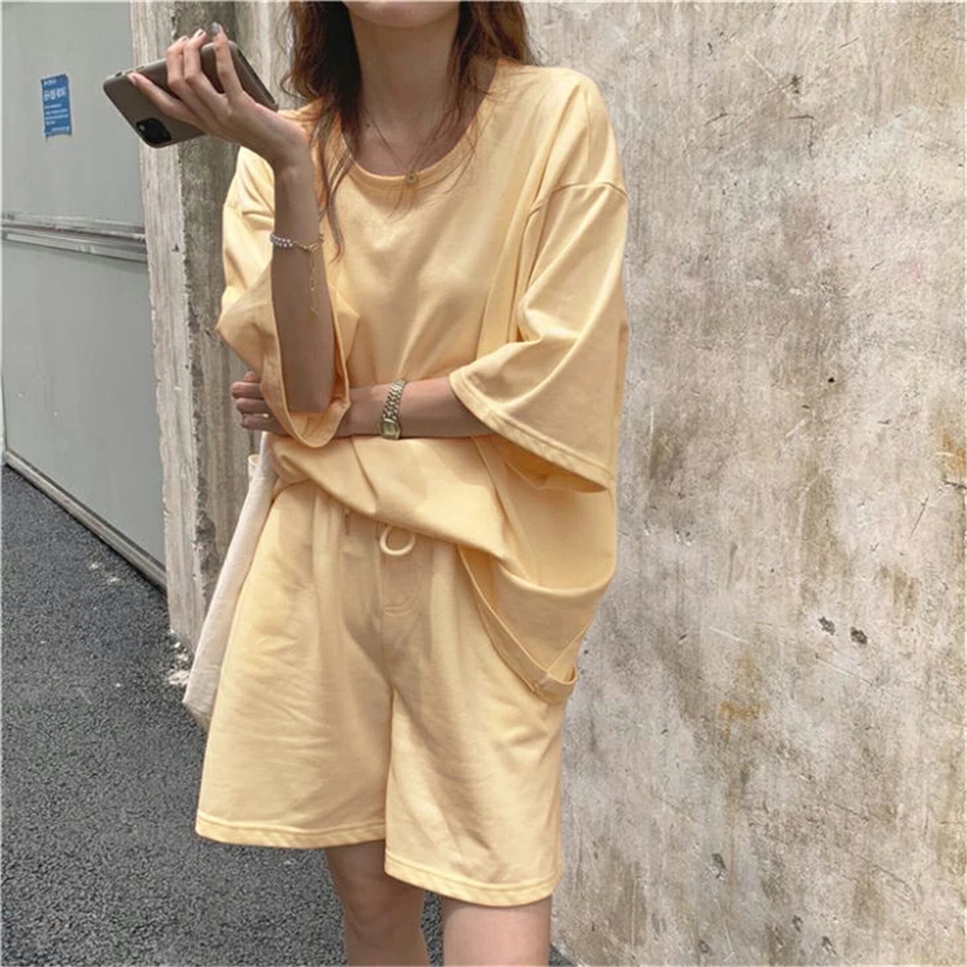 【セットアップ】 大きいサイズ セットアップ レディース おしゃれ ハーフ丈 パンツ スウェット tシャツ カットソー 春 夏 秋 冬 20代 30代 40代 きれいめ ブラック 黒 ライトイエロー グリーン 緑 M L