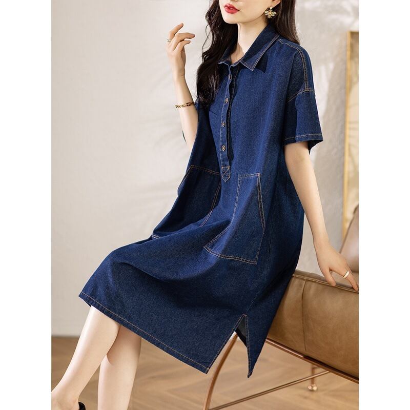 【ワンピース】大きいサイズ ワンピース レディース おしゃれ 20代 30代 40代 春 夏 秋 ひざ丈 膝丈 ワンピース 春夏 デニム 半袖 五分袖 20代 30代 40代 ワンピースドレス 韓国 ワンピース ドレス ワンピース 大人 可愛い カジュアル きれいめ ネイビー 青 S M L XL 2XL 3XL 4XL