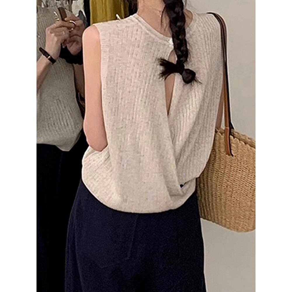 【ニット】大きいサイズ ニット セーター レディース おしゃれ かわいい ノースリーブ トップス 20代 30代 40代 春 夏 秋 ベージュ ブラック 黒 S M L XL 2XL