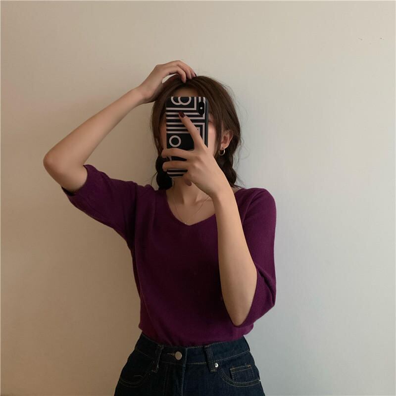 【ニット】ニット セーター レディース おしゃれ かわいい vネック トップス 半袖 20代 30代 40代 春 夏 秋 レディース ニット ベージュ グレー ホワイト 白 パープル レッド 赤 ダークグリーン キャメル ブラック 黒 イエロー ピンク フォグブルー グースイエロー オレンジ ライトパープル 紫 グリーン 緑 オートミール フリーサイズ