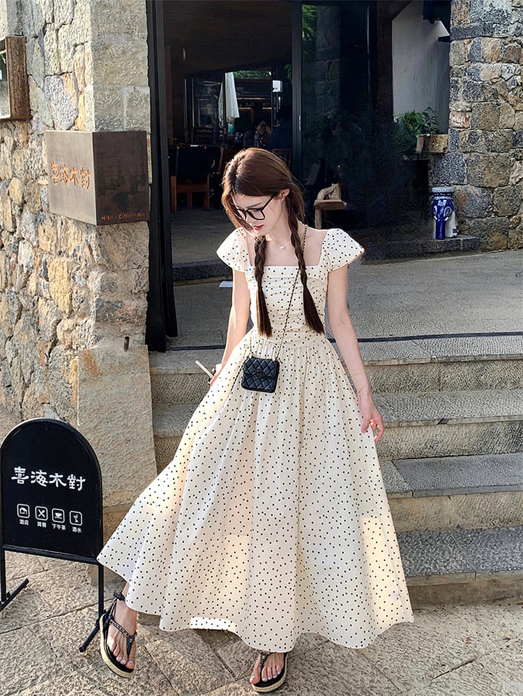 【ワンピース】大きいサイズ ワンピース レディース 春 夏 おしゃれ 20代 30代 40代 ドット ロングワンピース 春夏 半袖 ロング 韓国 ワンピース ドレス ワンピース 大人 可愛い カジュアル きれいめ S M L XL 2XL