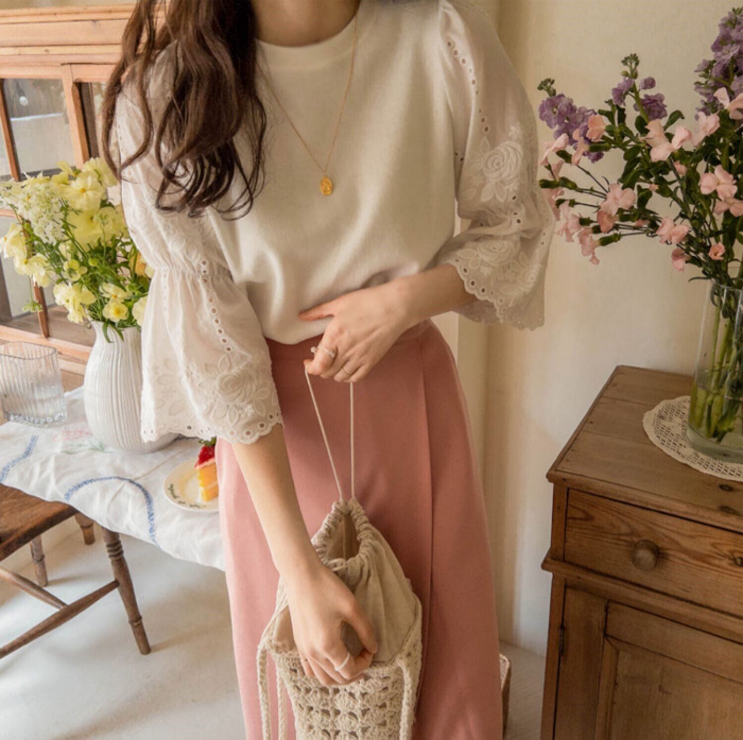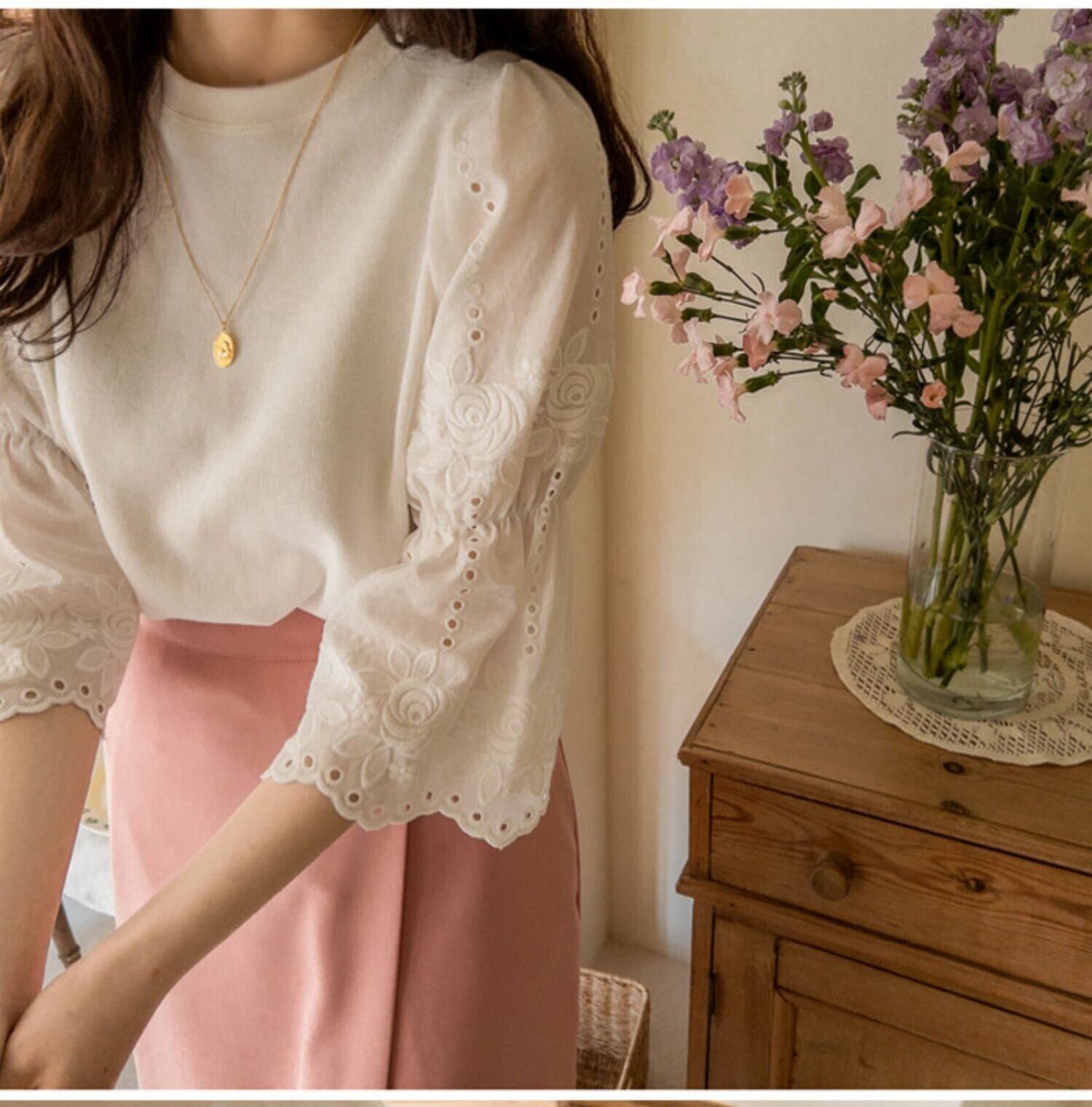 レーシィなお袖が大人可愛いブラウス。
