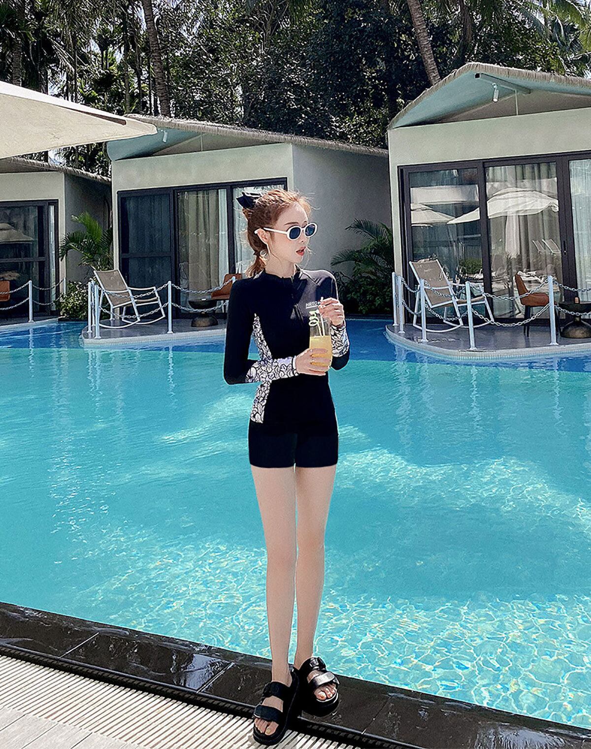 【水着】 大きいサイズ 韓国 水着 タンキニ 体型カバー ラッシュガード レディース 水着 かわいい おしゃれ 20代 30代 40代 ママ 水着 パンツ 海 ビーチ プール リゾート スイムウェア ブラック 黒 M L XL 2XL